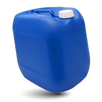 Ein großer blauer Kanister 30L mit weißen Deckel.