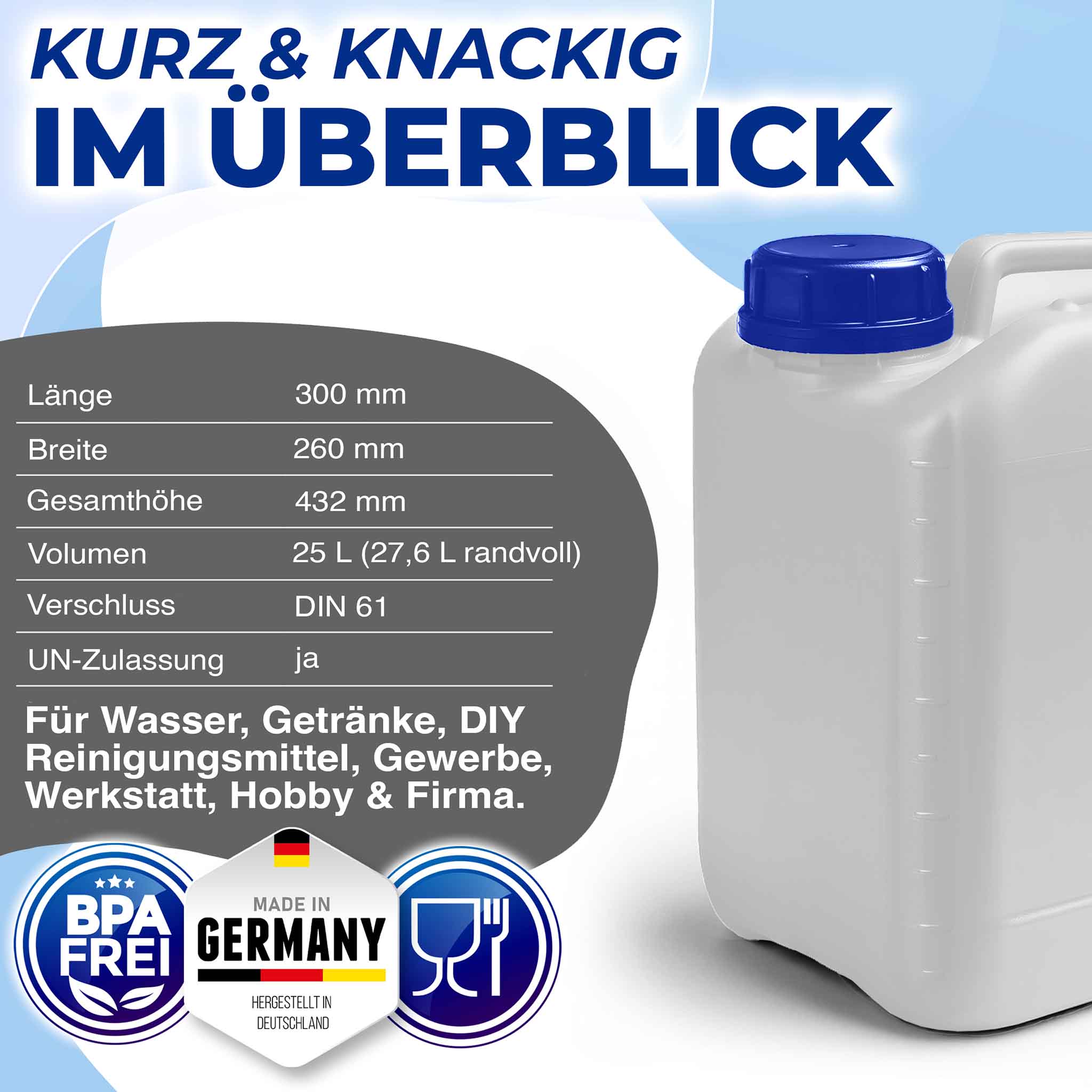 | Kanister + Deckel | Hergestellt in Deutschland |
