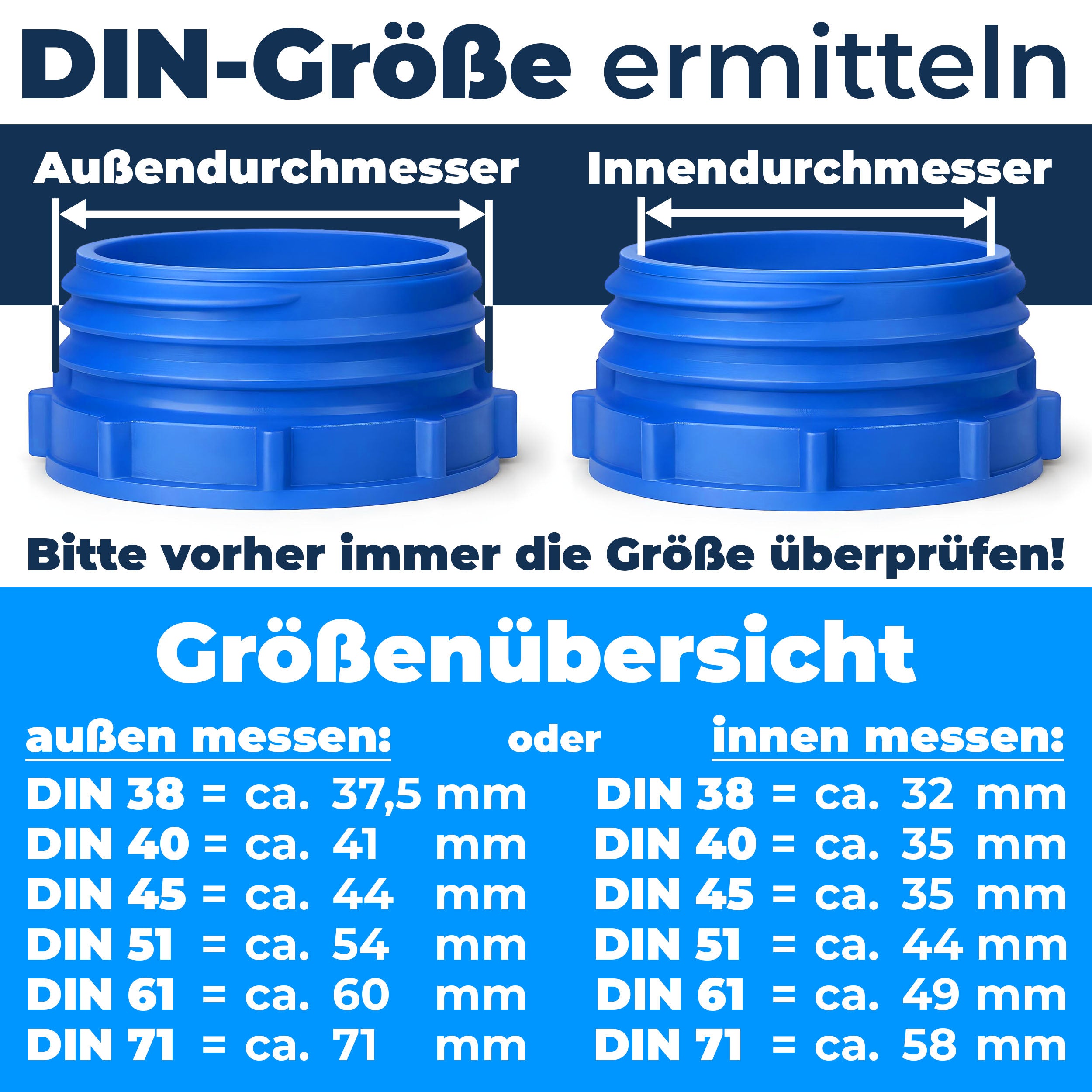 Dieses seltene Gewinde wird eigentlich nur bei 3L oder 5L "Nicht stapelbaren Leichtkanister verwendet". Bei den Leichtkanister gibt es 2 kleine Gewindetypen: DIN 38 und DIN 40 | Daher: Bitte nachmessen!